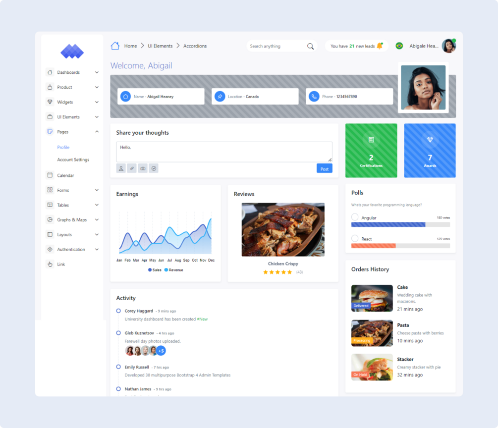 Arise is a Bootstrap 5 admin template designed to help developers create a professional dashboard quickly and easily. This modern and minimalistic admin template is built using HTML5, CSS3, and the Bootstrap 5 framework with Sass. It is a user-friendly, and responsive design that looks great on any device.
