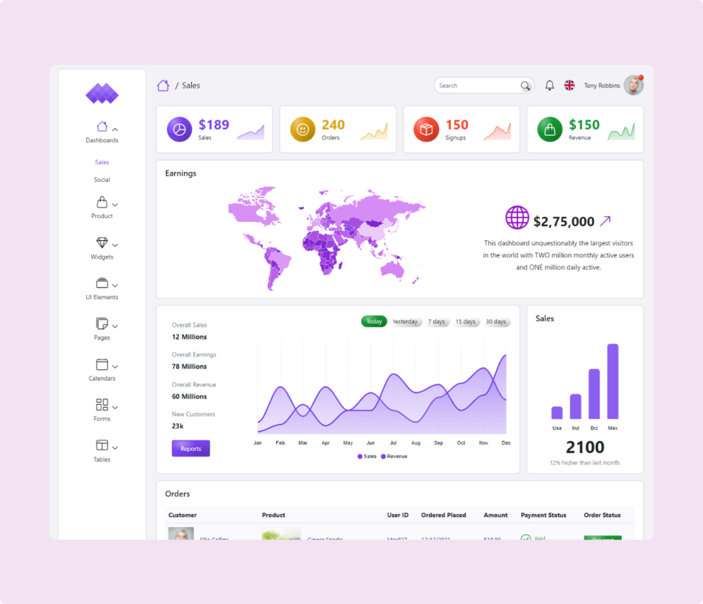 Overall, Max is a good option for developers looking for a user-friendly, and feature-rich Bootstrap 5 admin dashboard template.