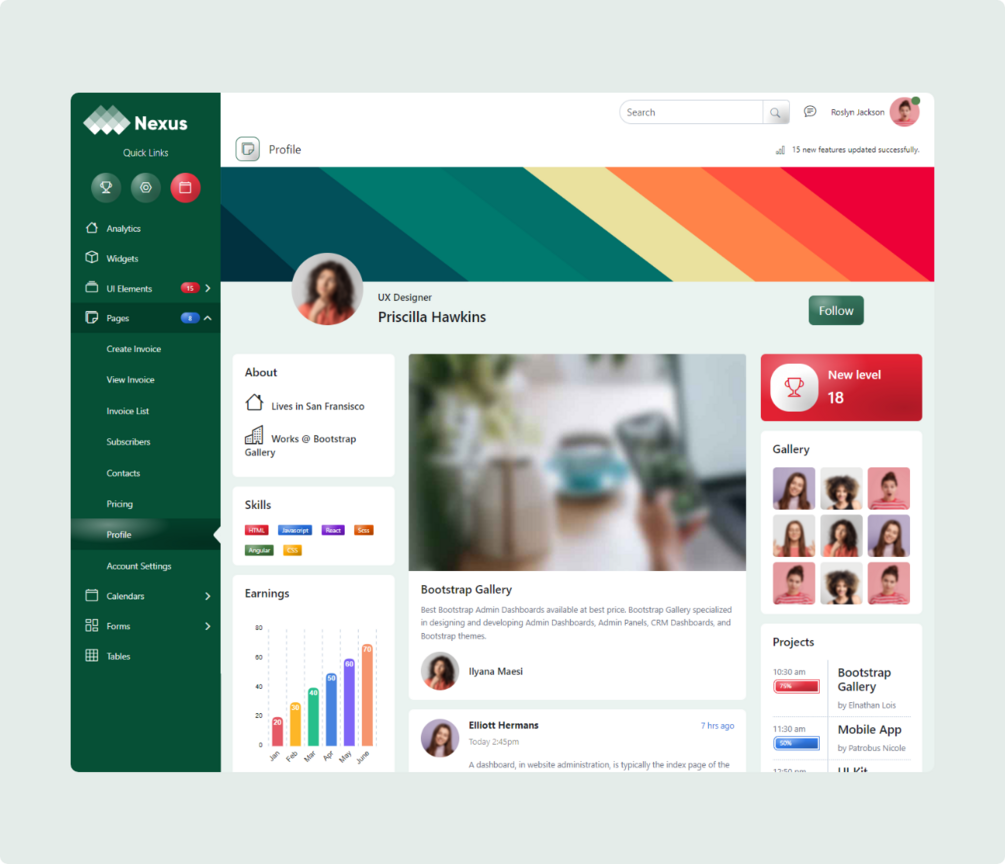 The Nexus Bootstrap Admin Template is a pre-built user interface designed for web applications that manage a lot of data and information. Here are some key features of the Nexus Bootstrap Admin Template: